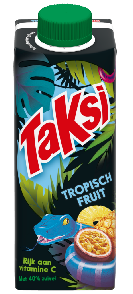 Met Taksi waan je je even in de jungle! Taksi is een heerlijke mix van vruchtensap en zuivel, rijk aan vitamine c. Daardoor is Taksi net even wat anders, en dat proef je!